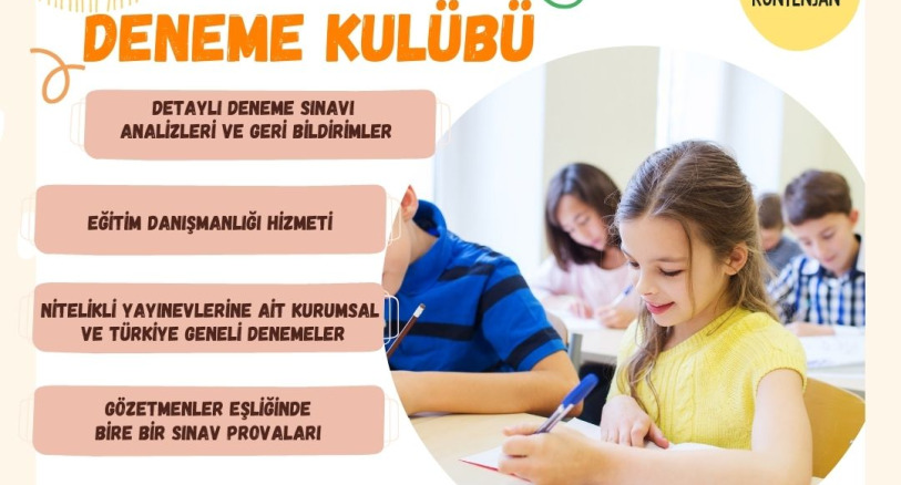 Detaylı deneme sınavı analizleri ve geri bildirimler Eğitim danışmanlığı hizmeti LGS grubu “her pazar” 5, 6, 7. Sınıflar “iki haftada bir” denemeler Türkiye geneli denemeler Farklı yayınevlerine ait nitelikli kurumsal denemeler Gözetmen kontrolünde bire bir sınav provaları Deneme kulübüne üye olmak için öğrencimiz olmak zorunda…
