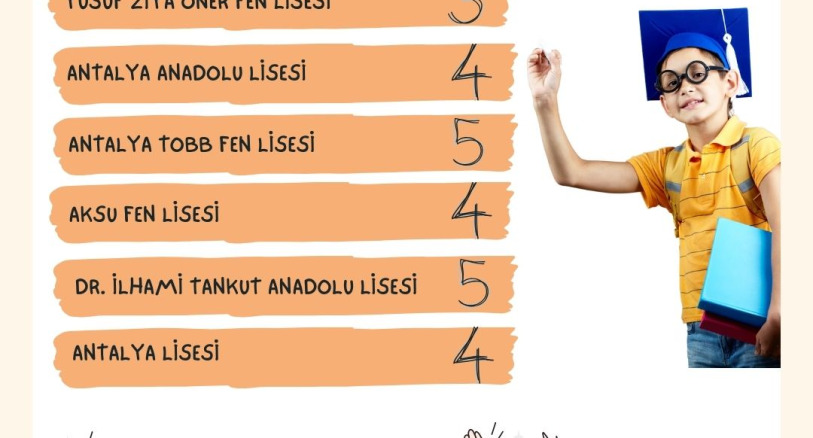 Yusuf Ziya Öner Fen Lisesi – 3 Öğrenci Antalya Anadolu Lisesi – 4 Öğrenci Antalya Tobb Fen Lisesi – 5 Öğrenci Aksu Fen Lisesi – 4 Öğrenci Dr. İlhami Tankut Anadolu Lisesi – 5 Öğrenci Antalya Lisesi – 3 Öğrenci Çoğu zaman görünen sonuç…
